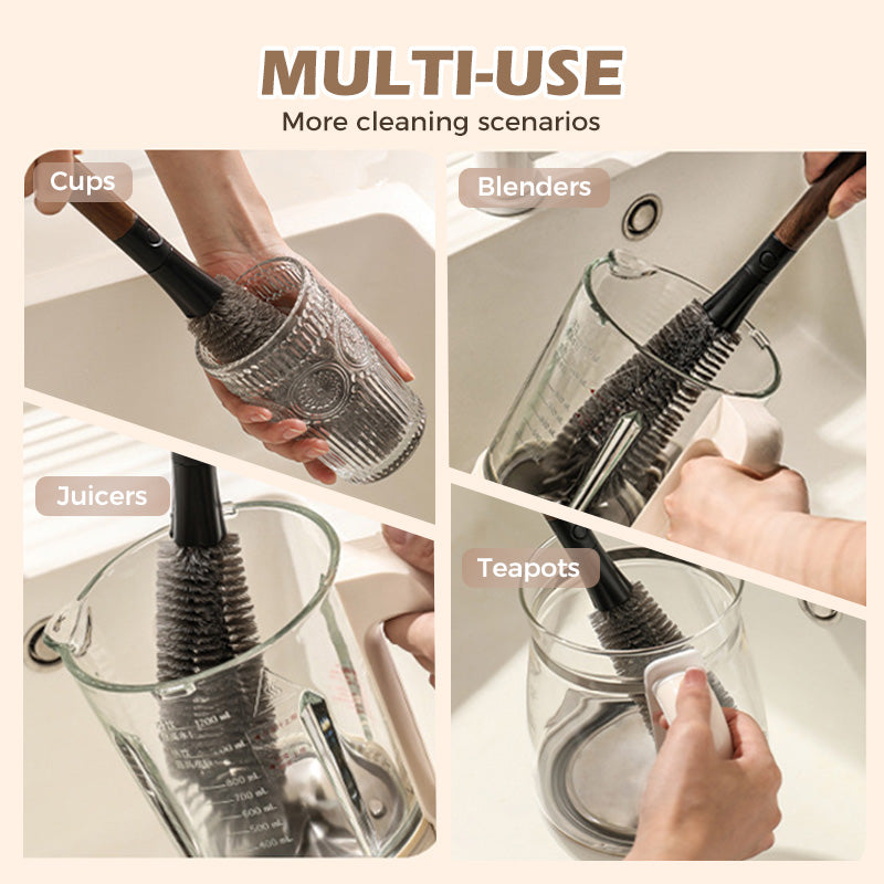 360° POTENCIA DE LIMPIEZA: El cabezal del cepillo curvado 90° se adapta perfectamente a las bocas y esquinas de los vasos, garantizando que no haya puntos ciegos. Proporciona una potencia de fregado profunda a la vez que protege las superficies de arañazos, dejando sus electrodomésticos frescos, impecables e higiénicos después de cada lavado.