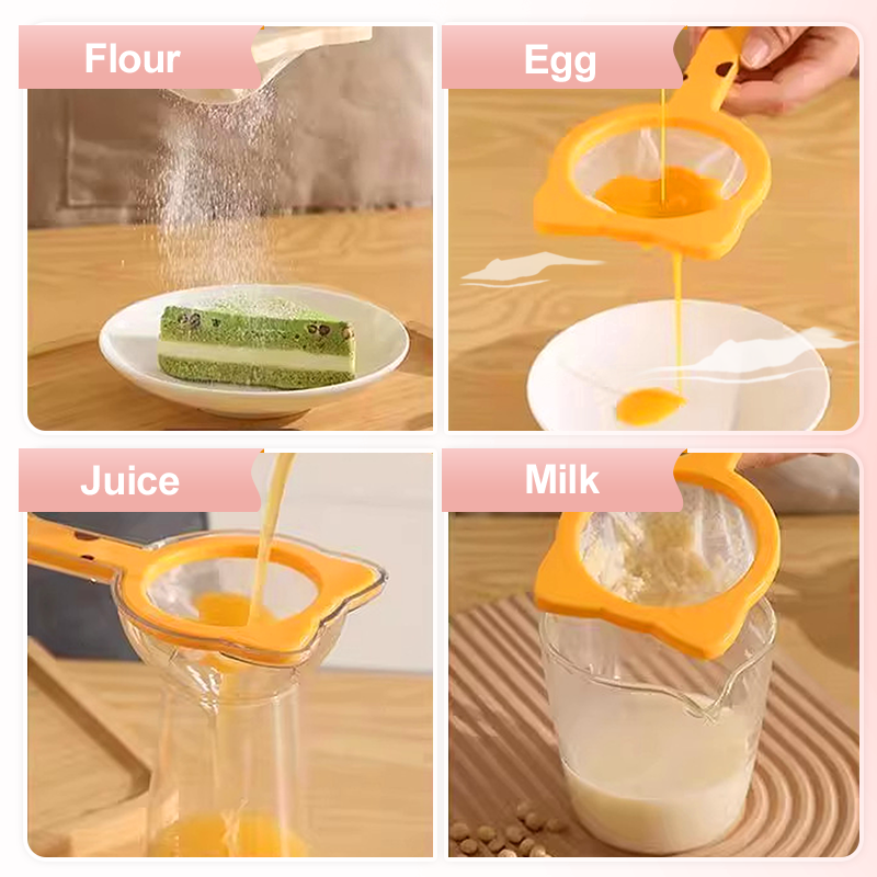 MALLAS DESMONTABLES Y FÁCILES DE LIMPIAR: Las mallas del colador son desmontables para facilitar su limpieza y sustitución, y son adecuadas para tamizar harina, zumos, residuos de leche, salsas u otros líquidos de cocina.