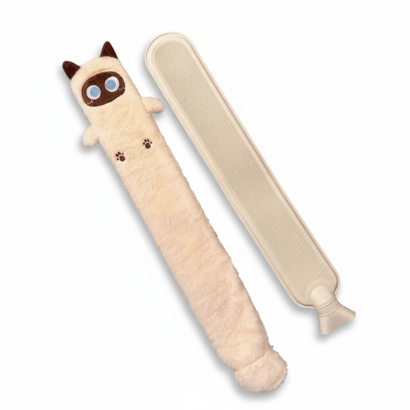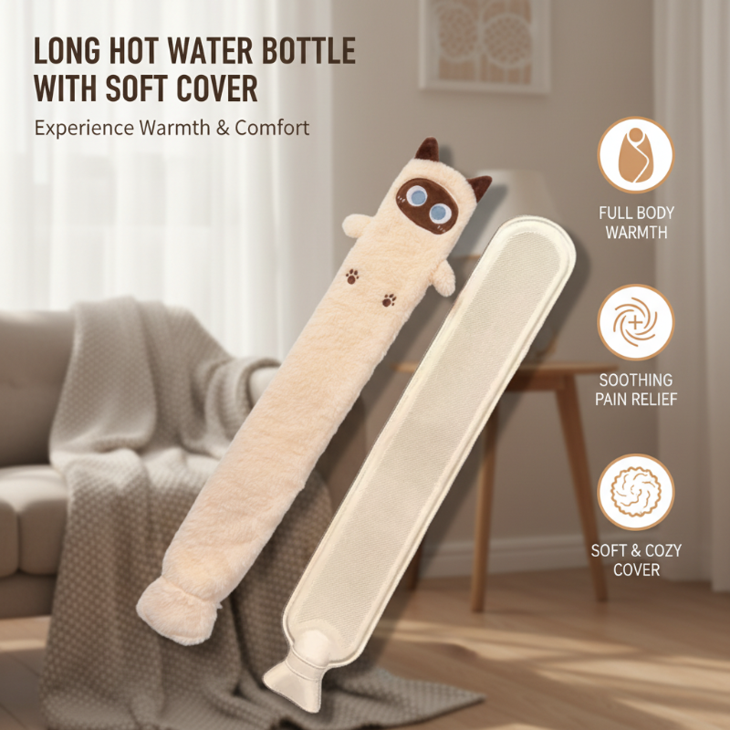 Botella de agua caliente larga con funda suave